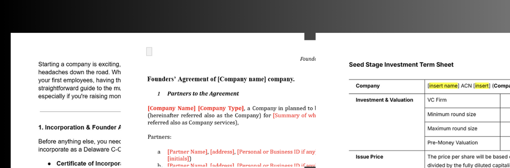 - Formation & Incorporation Docs – Set up your company properly (C-Corp, LLC).